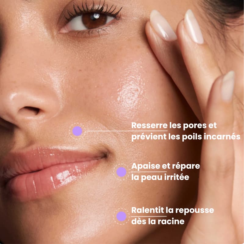 Avec une application régulière, les poils deviennent plus fins, plus clairsemés et moins visibles, tandis que la peau reste douce, apaisée et lumineuse.